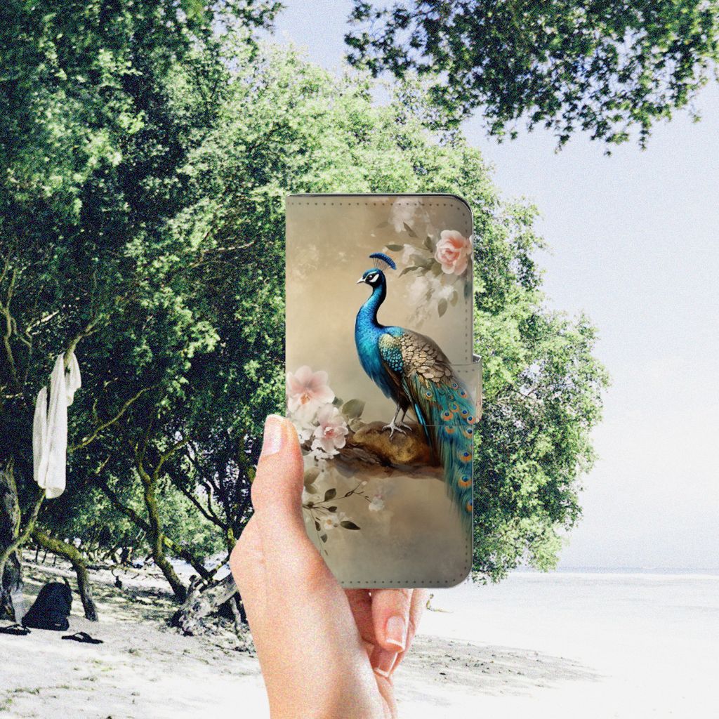 Wist je dat de sleep van pauwen bestaat uit wel 150 kleurige veren? Als de haan zijn sleep opzet om een vrouwtje te veroveren dan zie je deze veren het duidelijkst. Er zijn mensen die geloven dat een pauwenveer geluk brengt! Daarom mag dit romantische vintage pauwen design zeker niet ontbreken in onze collectie. Het blijven toch echt prachtige en fascinerende dieren om te zien! Dit design wordt geprint op een Telefoonhoesje met Pasjes speciaal op maat gemaakt voor de Motorola Moto G32. In dit hoesje kun je drie pasjes kwijt, super handig toch? Het hoesje wordt afgesloten met een sluit lipje, waardoor jouw telefoon altijd goed beschermd is. Bescherm je Motorola Moto G32 vandaag nog dit romantische vintage pauwen design hoesje!