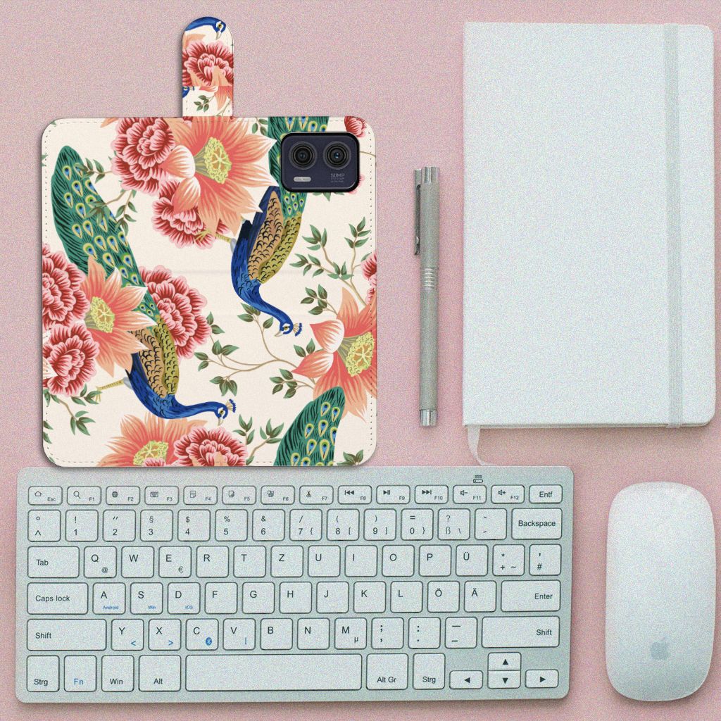 Wist je dat ons populairste design hoesje Pauw met Bloemen is? Wij vonden het tijd worden voor nog een mooi design met pauwen erop. De keuze is gevallen op Pink Peacock! Loop jij straks ook zo trots als een pauw rond met dit Motorola Moto G73 hoesje? Dit design wordt geprint op een Telefoonhoesje met Pasjes waarin je drie pasjes kwijt kunt. Het hoesje wordt afgesloten met een sluit lipje, waardoor jouw telefoon altijd goed beschermd is. Bescherm je Motorola Moto G73 vandaag nog met dit mooie Pink Peacock design hoesje!