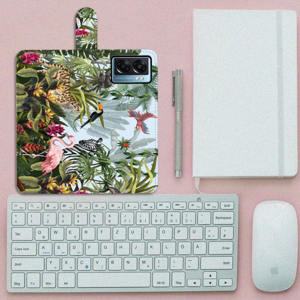 Ben je op zoek naar een tropische verrassing voor je OPPO A77 5G | A57 5G? Dan is dit hoesje in jungle stijl zeker iets voor jou! Met de verschillende soorten dieren waan je je even in de jungle, vind je ook niet? Dit design wordt geprint op een Telefoonhoesje met Pasjes waarin je drie pasjes kwijt kunt. Het hoesje wordt afgesloten met een sluit lipje, waardoor jouw telefoon altijd goed beschermd is. Bescherm je OPPO A77 5G | A57 5G vandaag nog met dit stoere jungle design hoesje!
