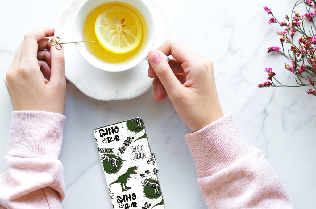Ook zo gek op alles met dinosaurussen te maken heeft? Dan mag dit hoesje met dino’s zeker niet ontbreken in jouw collectie! De skeletten, pootafdrukken en dino’s zorgen er hopelijk voor dat iedereen van jouw Samsung Galaxy A3 2017 afblijft! Dit toffe dino design wordt geprint op een Telefoonhoesje met Pasjes waarin je drie pasjes kwijt kunt. Het hoesje wordt afgesloten met een sluit lipje, waardoor jouw telefoon altijd goed beschermd is. Bescherm je Samsung Galaxy A3 2017 vandaag nog met dit gevaarlijke Dinosaurus design hoesje!