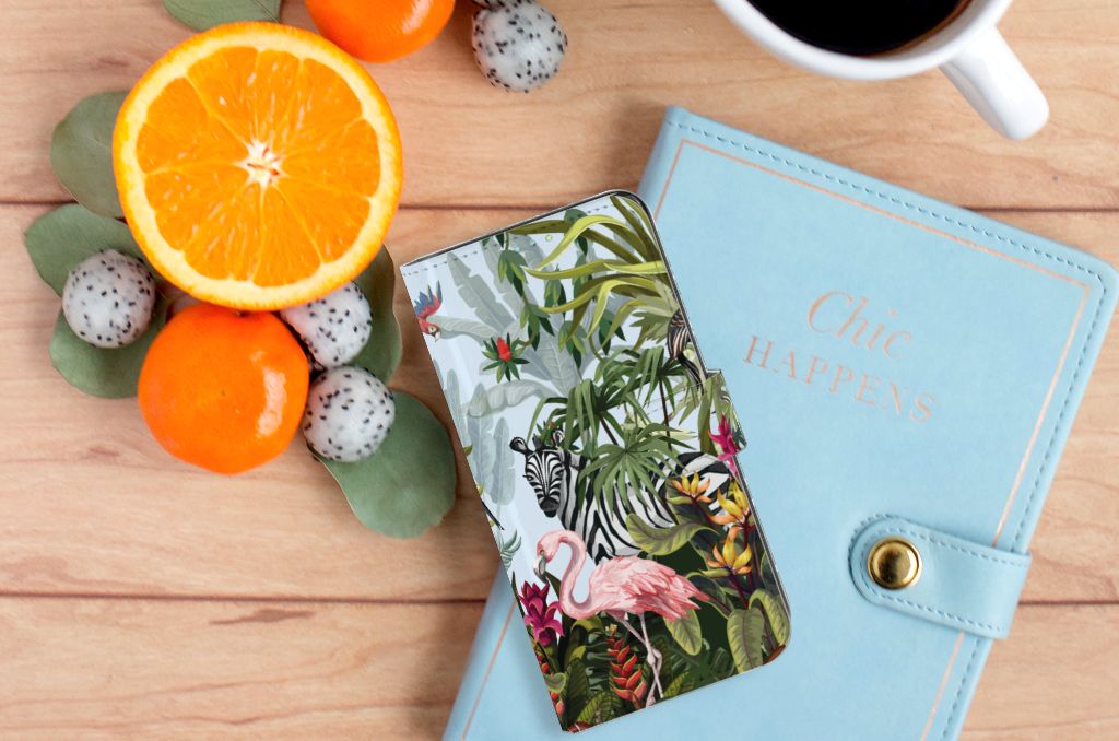 Ben je op zoek naar een tropische verrassing voor je Samsung Galaxy A52? Dan is dit hoesje in jungle stijl zeker iets voor jou! Met de verschillende soorten dieren waan je je even in de jungle, vind je ook niet? Dit design wordt geprint op een Telefoonhoesje met Pasjes waarin je drie pasjes kwijt kunt. Het hoesje wordt afgesloten met een sluit lipje, waardoor jouw telefoon altijd goed beschermd is. Bescherm je Samsung Galaxy A52 vandaag nog met dit stoere jungle design hoesje!