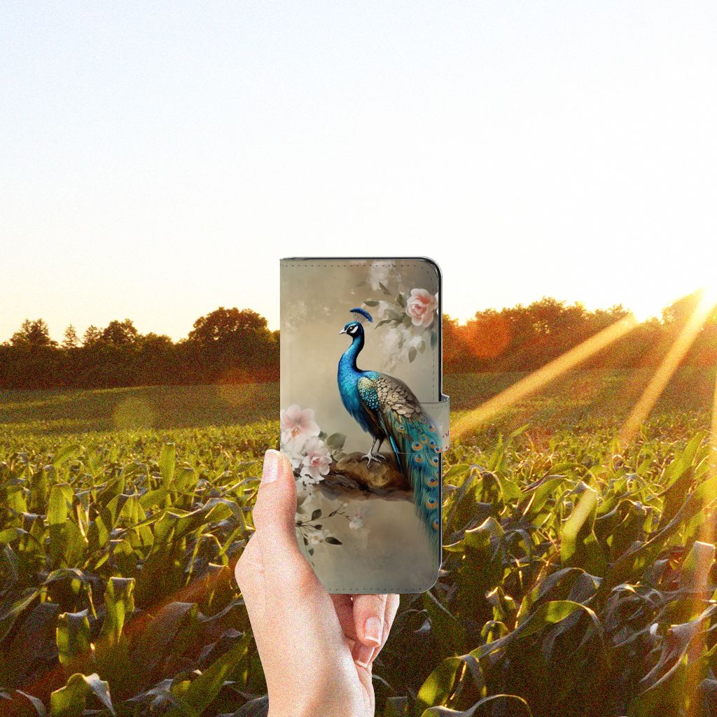 Wist je dat de sleep van pauwen bestaat uit wel 150 kleurige veren? Als de haan zijn sleep opzet om een vrouwtje te veroveren dan zie je deze veren het duidelijkst. Er zijn mensen die geloven dat een pauwenveer geluk brengt! Daarom mag dit romantische vintage pauwen design zeker niet ontbreken in onze collectie. Het blijven toch echt prachtige en fascinerende dieren om te zien! Dit design wordt geprint op een Telefoonhoesje met Pasjes speciaal op maat gemaakt voor de Samsung Galaxy M53. In dit hoesje kun je drie pasjes kwijt, super handig toch? Het hoesje wordt afgesloten met een sluit lipje, waardoor jouw telefoon altijd goed beschermd is. Bescherm je Samsung Galaxy M53 vandaag nog dit romantische vintage pauwen design hoesje!
