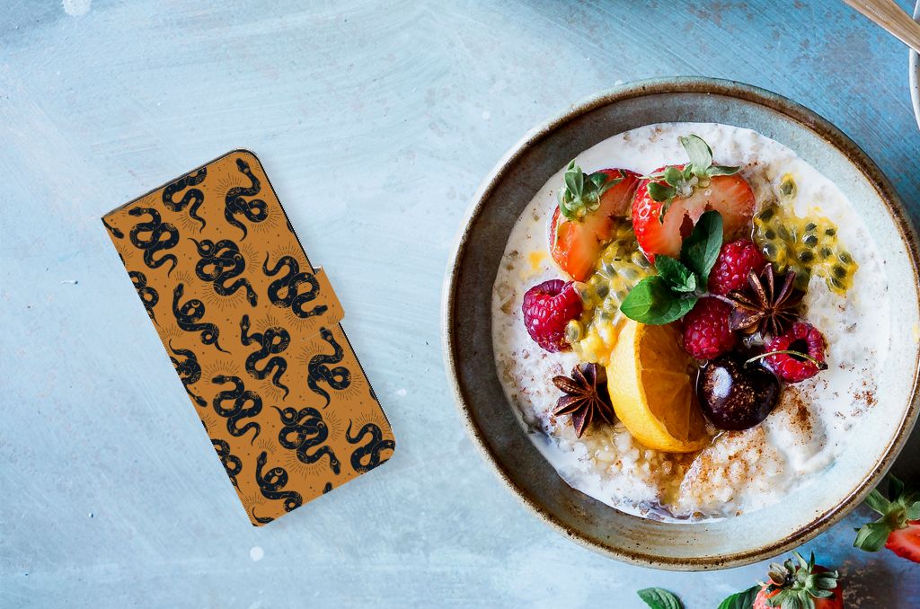 Slangen worden gekenmerkt door hun zeer lange en dunne lichaam en het ontbreken van ledematen. Wist je dat er ruim 3800 soorten slangen zijn? Waarvan maar 15% giftig is. Gelukkig is dit snakes design niet giftig! Hoe tof is dit design? 100% zeker dat jij opvalt met dit unieke snakes hoesje voor je Samsung Galaxy M54. Het design wordt geprint op een Telefoonhoesje met Pasjes waarin je drie pasjes kwijt kunt. Het hoesje wordt afgesloten met een sluit lipje, waardoor jouw telefoon altijd goed beschermd is. Bescherm je Samsung Galaxy M54 vandaag nog met dit toffe snakes design hoesje!