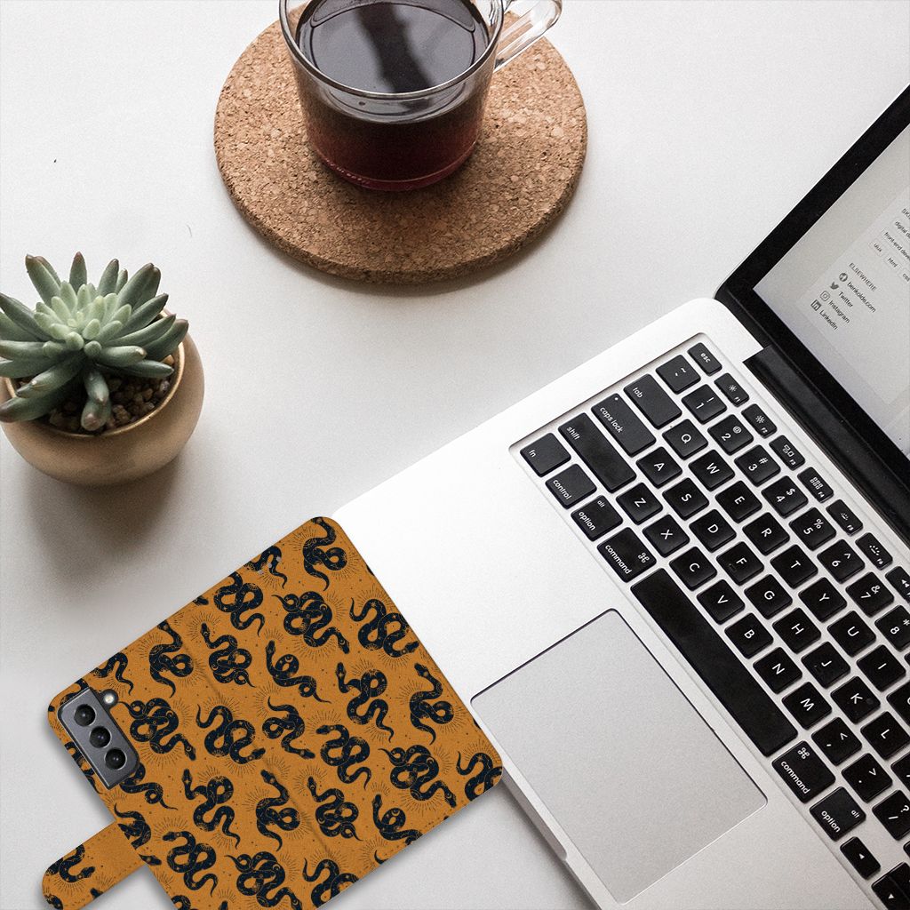 Slangen worden gekenmerkt door hun zeer lange en dunne lichaam en het ontbreken van ledematen. Wist je dat er ruim 3800 soorten slangen zijn? Waarvan maar 15% giftig is. Gelukkig is dit snakes design niet giftig! Hoe tof is dit design? 100% zeker dat jij opvalt met dit unieke snakes hoesje voor je Samsung Galaxy S21 FE. Het design wordt geprint op een Telefoonhoesje met Pasjes waarin je drie pasjes kwijt kunt. Het hoesje wordt afgesloten met een sluit lipje, waardoor jouw telefoon altijd goed beschermd is. Bescherm je Samsung Galaxy S21 FE vandaag nog met dit toffe snakes design hoesje!