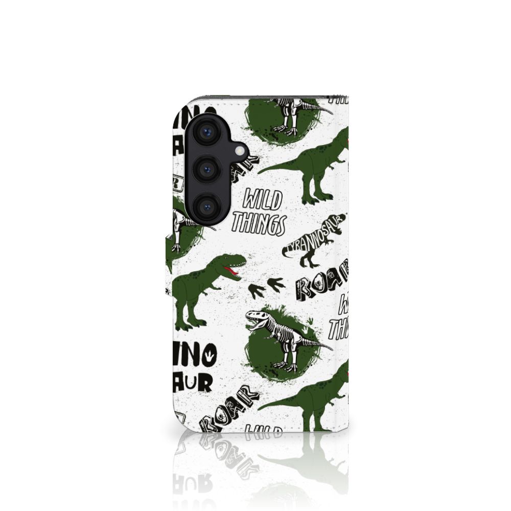 Ook zo gek op alles met dinosaurussen te maken heeft? Dan mag dit hoesje met dino’s zeker niet ontbreken in jouw collectie! De skeletten, pootafdrukken en dino’s zorgen er hopelijk voor dat iedereen van jouw Samsung Galaxy S24 afblijft! Dit toffe dino design wordt geprint op een Telefoonhoesje met Pasjes waarin je drie pasjes kwijt kunt. Het hoesje wordt afgesloten met een sluit lipje, waardoor jouw telefoon altijd goed beschermd is. Bescherm je Samsung Galaxy S24 vandaag nog met dit gevaarlijke Dinosaurus design hoesje!