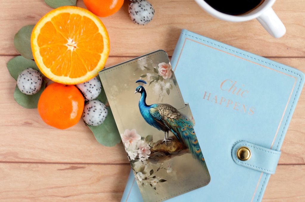 Wist je dat de sleep van pauwen bestaat uit wel 150 kleurige veren? Als de haan zijn sleep opzet om een vrouwtje te veroveren dan zie je deze veren het duidelijkst. Er zijn mensen die geloven dat een pauwenveer geluk brengt! Daarom mag dit romantische vintage pauwen design zeker niet ontbreken in onze collectie. Het blijven toch echt prachtige en fascinerende dieren om te zien! Dit design wordt geprint op een Telefoonhoesje met Pasjes speciaal op maat gemaakt voor de Samsung Galaxy S24 Ultra. In dit hoesje kun je drie pasjes kwijt, super handig toch? Het hoesje wordt afgesloten met een sluit lipje, waardoor jouw telefoon altijd goed beschermd is. Bescherm je Samsung Galaxy S24 Ultra vandaag nog dit romantische vintage pauwen design hoesje!
