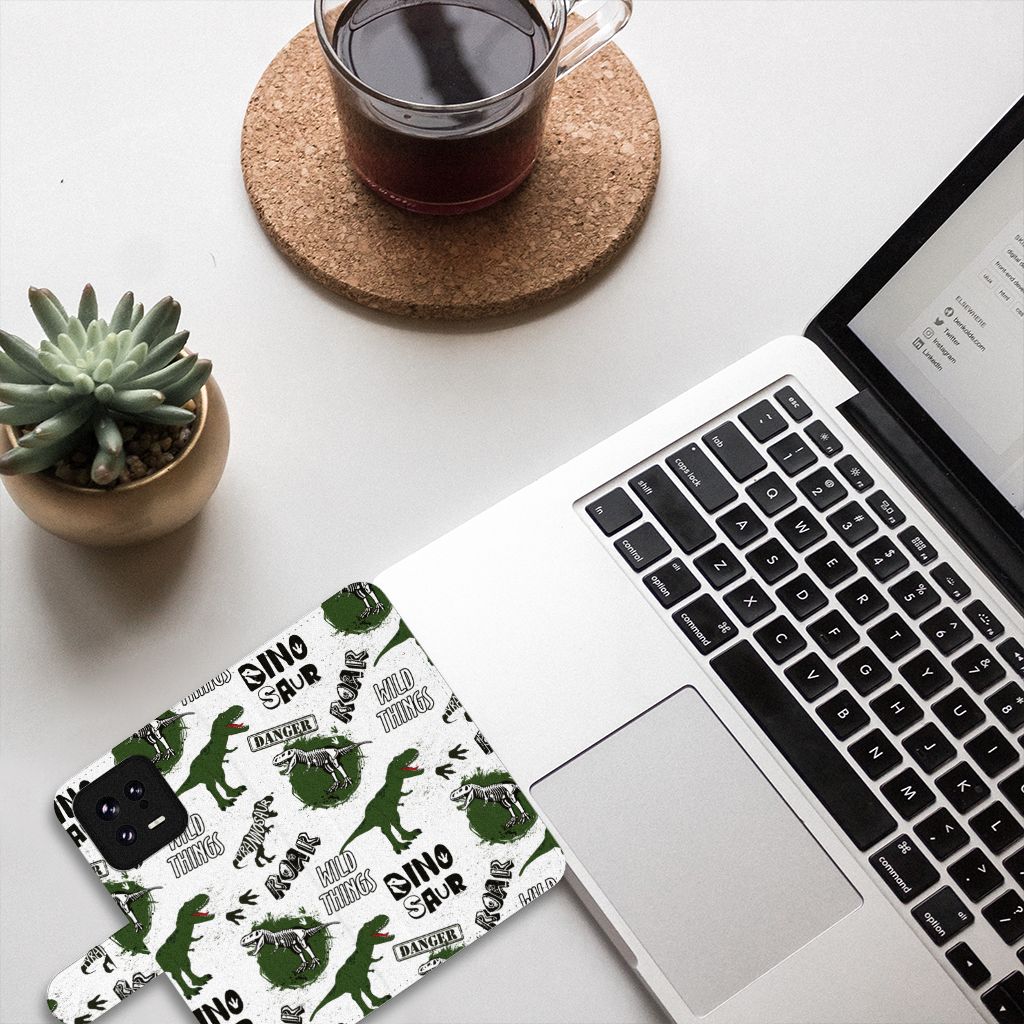 Ook zo gek op alles met dinosaurussen te maken heeft? Dan mag dit hoesje met dino’s zeker niet ontbreken in jouw collectie! De skeletten, pootafdrukken en dino’s zorgen er hopelijk voor dat iedereen van jouw Xiaomi 13 afblijft! Dit toffe dino design wordt geprint op een Telefoonhoesje met Pasjes waarin je drie pasjes kwijt kunt. Het hoesje wordt afgesloten met een sluit lipje, waardoor jouw telefoon altijd goed beschermd is. Bescherm je Xiaomi 13 vandaag nog met dit gevaarlijke Dinosaurus design hoesje!