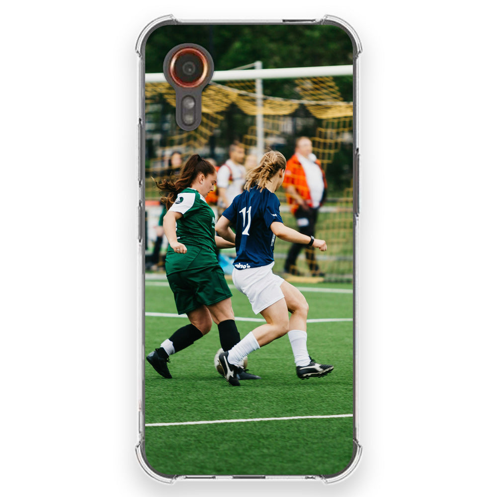 TPU Back Cover Hoesje Maken voor de Samsung Galaxy Xcover 7. Ben je op zoek naar een originele en unieke bescherming voor je telefoon? Dan ben je bij B2C Telecom aan het juiste adres! Je kunt via onze website gemakkelijk een telefoonhoesje ontwerpen met foto's, tekst of bedrijfslogo. De mogelijkheden zijn eindeloos. Wees creatief en upload foto's of plaatjes van je kinderen, huisdieren, familie, hobby of favoriete voetbalclub. De foto's of plaatjes kun je in de gewenste grootte plaatsen of draaien voor een speels effect. Maak het hoesje persoonlijker door je naam of quote toe te voegen. Je kunt kiezen uit verschillende lettertypes; van strak tot vetgedrukt of ga je liever voor iets sierlijks? Het kan allemaal! De kers op de taart is natuurlijk de toevoeging van een glossy-effect! Kies uit verschillende effecten en jouw hoesje wordt subtiel bedrukt met een glossy-effect. Kortom, wij bieden verschillende mogelijkheden om jouw hoesje zo persoonlijk en uniek mogelijk te maken! Jouw ontwerp wordt bedrukt op TPU hoesje. Enkel de voorzijde van het hoesje worden bedrukt. De randen blijven transparant. Overtuigd? Ontwerp dan vandaag nog je eigen telefoonhoesje en ontvang jouw ontwerp binnen een aantal werkdagen in huis!