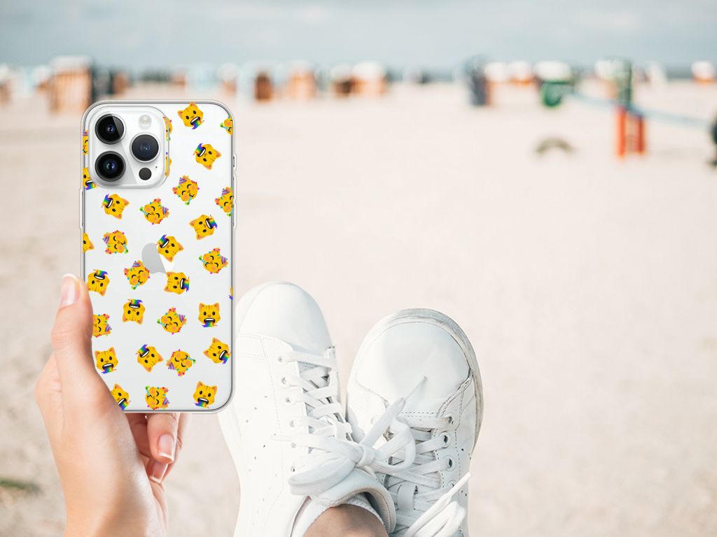 Ook zo gek op katten, maar wil je een keer iets anders? Dan hebben wij het perfecte hoesje voor jouw iPhone 14 Pro Max met gekke katten emojis. Met dit TPU bumper heb jij 100% zeker een uniek hoesje in handen. Dit hoesje ligt prettig in de hand en is licht van gewicht. Alleen de achterkant van je telefoon wordt beschermd. Daarom adviseren wij om dit hoesje in combinatie met een screenprotector te gebruiken. Dit katten design wordt alleen geprint en de achtergrond blijft transparant. Hierdoor zie je altijd de kleur van je smartphone. Hoe leuk is dat? Bescherm jouw telefoon vandaag nog met dit te gekke katten emojis hoesje!