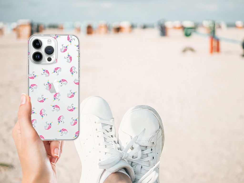 Vind jij unicorns ook zo leuk? Dan hebben wij het perfecte hoesje voor jouw iPhone 14 Pro Max! Met deze schattige unicorns heb jij gegarandeerd iets unieks in handen. Dit TPU bumper ligt prettig in de hand en is licht van gewicht. Alleen de achterkant van je telefoon wordt beschermd. Daarom adviseren wij om dit hoesje in combinatie met een screenprotector te gebruiken. Het unicorn design wordt alleen geprint en de achtergrond blijft transparant. Hierdoor zie je altijd de kleur van je smartphone. Hoe leuk is dat? Bescherm jouw telefoon vandaag nog met dit unicorn hoesje!