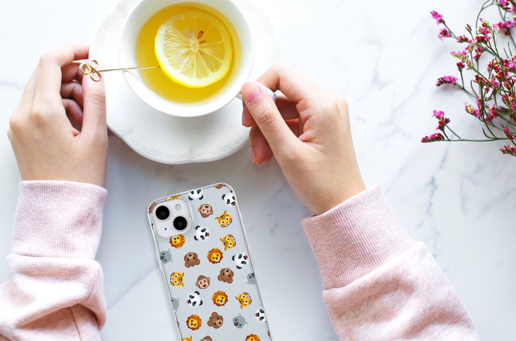 Ben jij ook zo gek op dieren? En kan je geen keuze maken uit al onze dieren design hoesjes? Kies dan voor dit leuke iPhone 15 Plus hoesje met verschillende dieren emojis. Dit TPU bumper ligt prettig in de hand en is licht van gewicht. Alleen de achterkant van je telefoon wordt beschermd. Daarom adviseren wij om dit hoesje in combinatie met een screenprotector te gebruiken. Het dieren design wordt alleen geprint en de achtergrond blijft transparant. Hierdoor zie je altijd de kleur van je smartphone. Hoe leuk is dat? Bescherm jouw telefoon vandaag nog met dit dieren emojis hoesje!