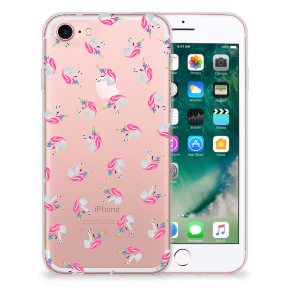 Vind jij unicorns ook zo leuk? Dan hebben wij het perfecte hoesje voor jouw iPhone SE 2022 | SE 2020 | 8 | 7! Met deze schattige unicorns heb jij gegarandeerd iets unieks in handen. Dit TPU bumper ligt prettig in de hand en is licht van gewicht. Alleen de achterkant van je telefoon wordt beschermd. Daarom adviseren wij om dit hoesje in combinatie met een screenprotector te gebruiken. Het unicorn design wordt alleen geprint en de achtergrond blijft transparant. Hierdoor zie je altijd de kleur van je smartphone. Hoe leuk is dat? Bescherm jouw telefoon vandaag nog met dit unicorn hoesje!