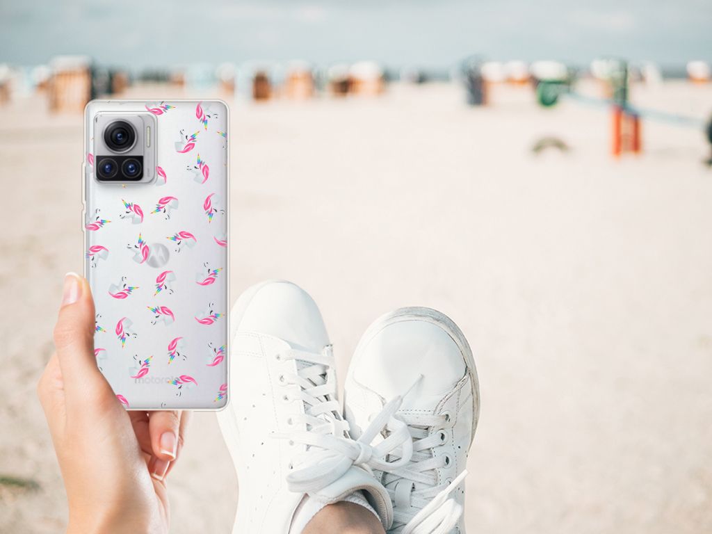 Vind jij unicorns ook zo leuk? Dan hebben wij het perfecte hoesje voor jouw Motorola Moto X30 Pro! Met deze schattige unicorns heb jij gegarandeerd iets unieks in handen. Dit TPU bumper ligt prettig in de hand en is licht van gewicht. Alleen de achterkant van je telefoon wordt beschermd. Daarom adviseren wij om dit hoesje in combinatie met een screenprotector te gebruiken. Het unicorn design wordt alleen geprint en de achtergrond blijft transparant. Hierdoor zie je altijd de kleur van je smartphone. Hoe leuk is dat? Bescherm jouw telefoon vandaag nog met dit unicorn hoesje!