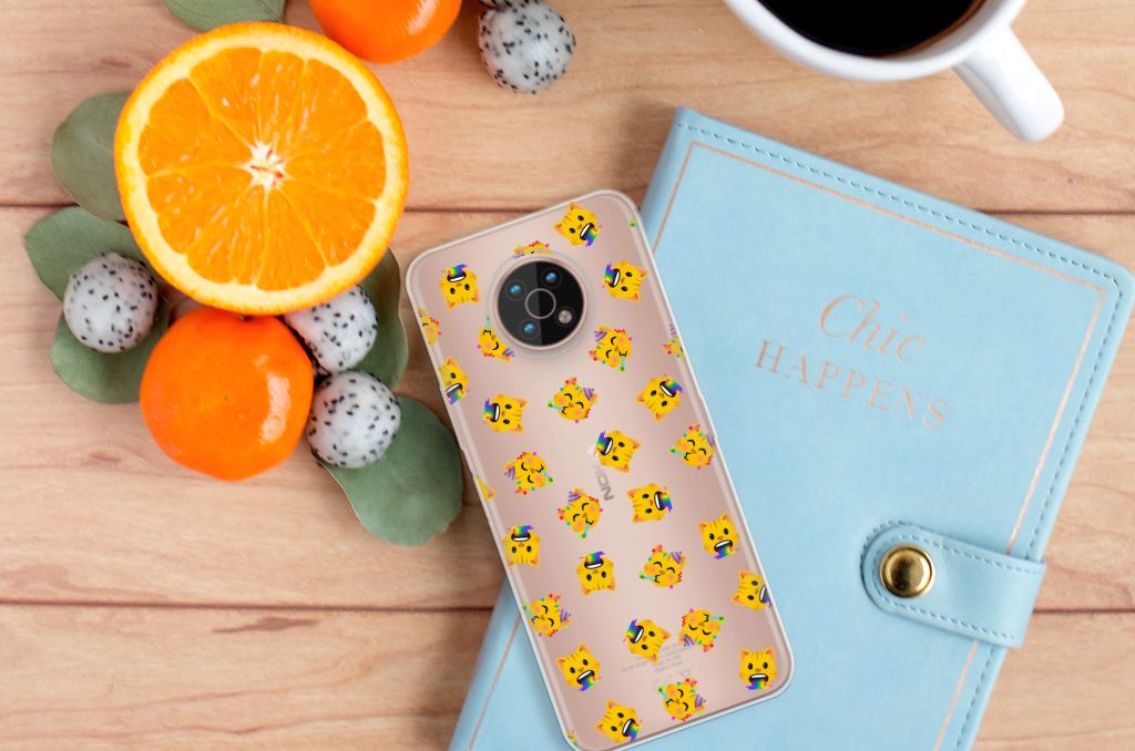 Ook zo gek op katten, maar wil je een keer iets anders? Dan hebben wij het perfecte hoesje voor jouw Nokia G50 met gekke katten emojis. Met dit TPU bumper heb jij 100% zeker een uniek hoesje in handen. Dit hoesje ligt prettig in de hand en is licht van gewicht. Alleen de achterkant van je telefoon wordt beschermd. Daarom adviseren wij om dit hoesje in combinatie met een screenprotector te gebruiken. Dit katten design wordt alleen geprint en de achtergrond blijft transparant. Hierdoor zie je altijd de kleur van je smartphone. Hoe leuk is dat? Bescherm jouw telefoon vandaag nog met dit te gekke katten emojis hoesje!