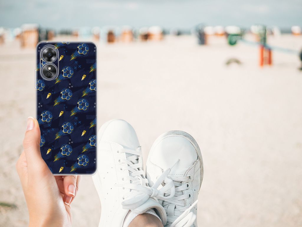 Wist je dat voetbal in 1865 is ontstaan in Nederland door wonende en werkende Britten in ons land? Tegenwoordig ademt Nederland voetbal en is het een van de meest beoefende sport. Iedereen kijkt en speelt het graag en daarom mag dit voetbal design hoesjes zeker niet ontbreken in onze collectie. Dit design wordt geprint op een TPU bumper speciaal op maat gemaakt voor de OPPO A17. Het ligt prettig in de hand en is licht van gewicht. Alleen de achterkant van je telefoon wordt beschermd. Daarom adviseren wij om dit hoesje in combinatie met een screenprotector te gebruiken. Bescherm jouw smartphone vandaag nog met dit toffe voetbal design hoesje!