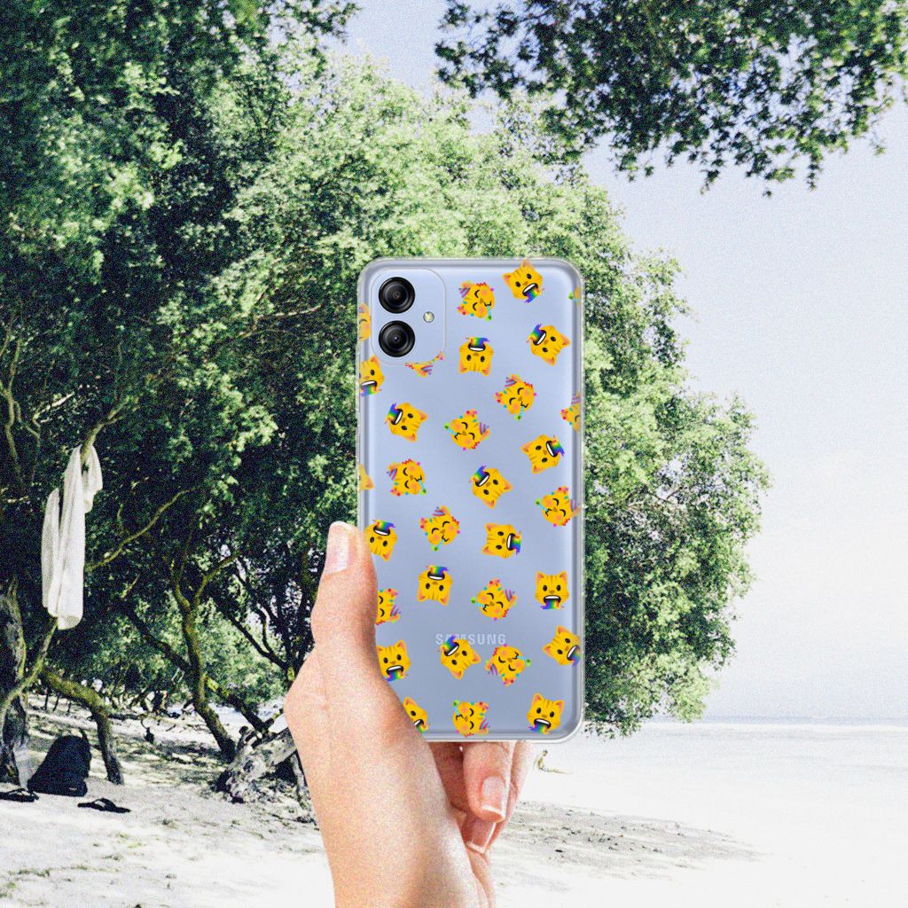Ook zo gek op katten, maar wil je een keer iets anders? Dan hebben wij het perfecte hoesje voor jouw Samsung Galaxy A04e met gekke katten emojis. Met dit TPU bumper heb jij 100% zeker een uniek hoesje in handen. Dit hoesje ligt prettig in de hand en is licht van gewicht. Alleen de achterkant van je telefoon wordt beschermd. Daarom adviseren wij om dit hoesje in combinatie met een screenprotector te gebruiken. Dit katten design wordt alleen geprint en de achtergrond blijft transparant. Hierdoor zie je altijd de kleur van je smartphone. Hoe leuk is dat? Bescherm jouw telefoon vandaag nog met dit te gekke katten emojis hoesje!