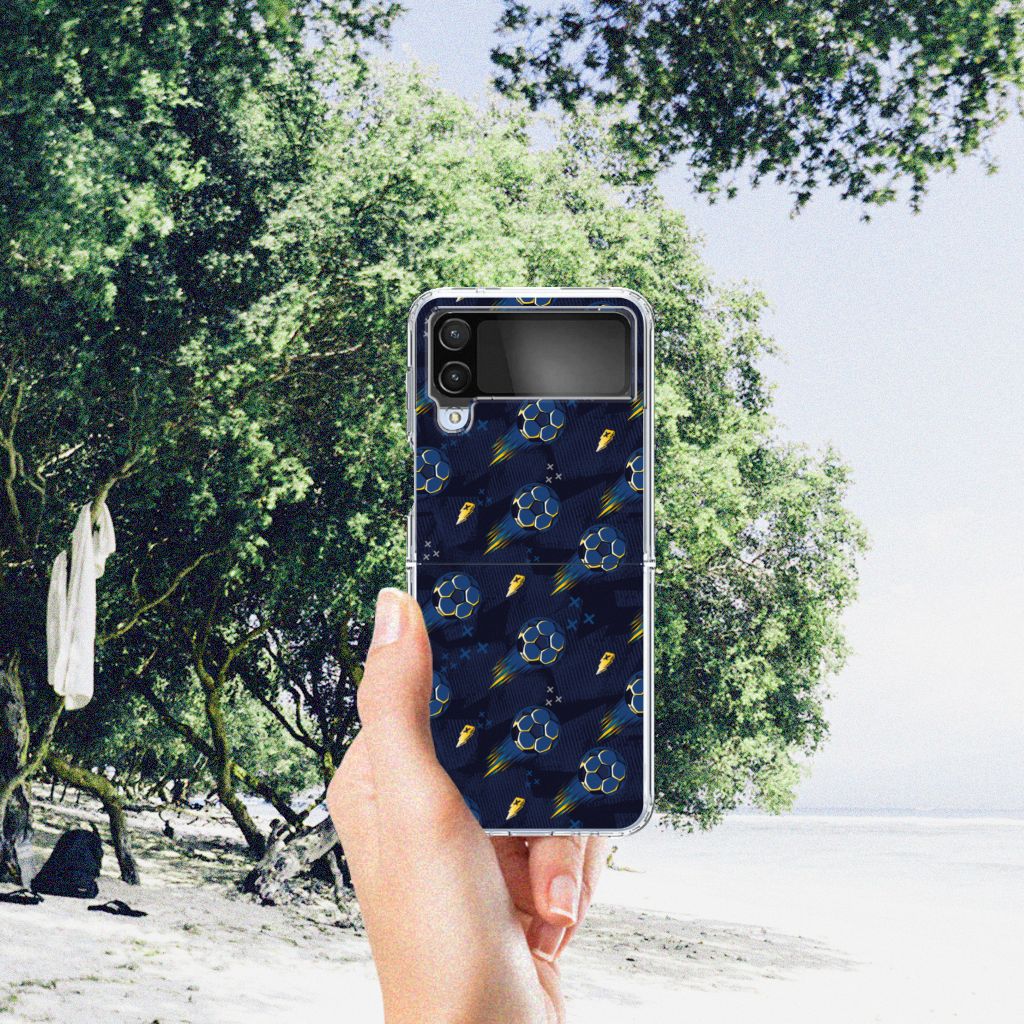 Wist je dat voetbal in 1865 is ontstaan in Nederland door wonende en werkende Britten in ons land? Tegenwoordig ademt Nederland voetbal en is het een van de meest beoefende sport. Iedereen kijkt en speelt het graag en daarom mag dit voetbal design hoesjes zeker niet ontbreken in onze collectie. Dit design wordt geprint op een TPU bumper speciaal op maat gemaakt voor de Samsung Galaxy Z Flip 4. Het ligt prettig in de hand en is licht van gewicht. Alleen de achterkant van je telefoon wordt beschermd. Daarom adviseren wij om dit hoesje in combinatie met een screenprotector te gebruiken. Bescherm jouw smartphone vandaag nog met dit toffe voetbal design hoesje!