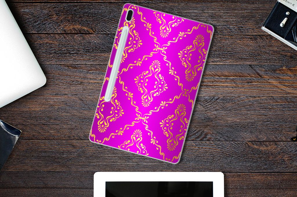 Dit super mooie Samsung Galaxy Tab S7FE TPU Case met Barok Roze achtergrond is een geweldige en duurzame bescherming voor jouw tablet. De roze kleuren en figuren worden met de grootst mogelijke zorg op het hoesje gezet en op de achterkant bedrukt. Dit drukwerk doen we in ons eigen magazijn, zodat we de kwaliteit van het hoesje met roze barok achtergrond kunnen garanderen. Dit hoesje is perfect op maat gemaakt en heeft een mooie uitstraling. Daarnaast is de case zeer flexibel en het materiaal onbreekbaar. De case heeft opstaande randen ter bescherming van het scherm. De randen van het hoesje worden niet in roze barok bedrukt. Nergens anders tref je een tablethoesje met roze barok achtergrond aan dat zo goed past bij jouw tablet.