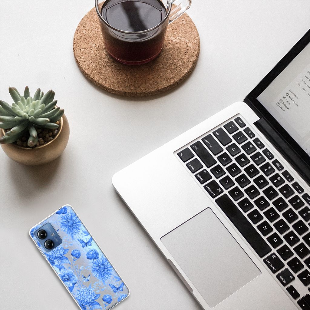 Wist je dat de meest verkochte hoesjes bij B2C Telecom degene zijn met bloemen erop? Vandaar dat wij dit prachtige design met blauwe bloemen toevoegen aan onze collectie. Het is eigenlijk gewoon mooi Delftsblauw, maar dan op een telefoonhoesje! Dit design wordt geprint op een TPU Case speciaal op maat gemaakt voor de Motorola Moto G14. Het ligt prettig in de hand en is licht van gewicht. Alleen de achterkant van je telefoon wordt beschermd. Daarom adviseren wij om dit hoesje in combinatie met een screenprotector te gebruiken. Bescherm jouw smartphone vandaag nog met dit prachtige blauwe bloemen hoesje!