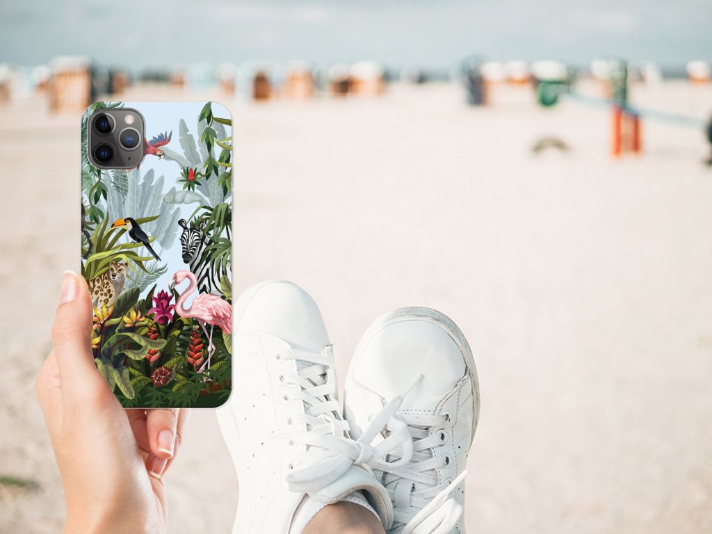 Ben je op zoek naar een tropische verrassing voor je Apple iPhone 11 Pro Max? Dan is dit hoesje in jungle stijl zeker iets voor jou! Met de verschillende soorten dieren waan je je even in de Jungle, vind je ook niet? Dit design wordt geprint op een TPU Hoesje. Het ligt prettig in de hand en is licht van gewicht. Alleen de achterkant van je telefoon wordt beschermd. Daarom adviseren wij om dit hoesje in combinatie met een screenprotector te gebruiken. Bescherm jouw smartphone vandaag nog met dit stoere jungle design hoesje!