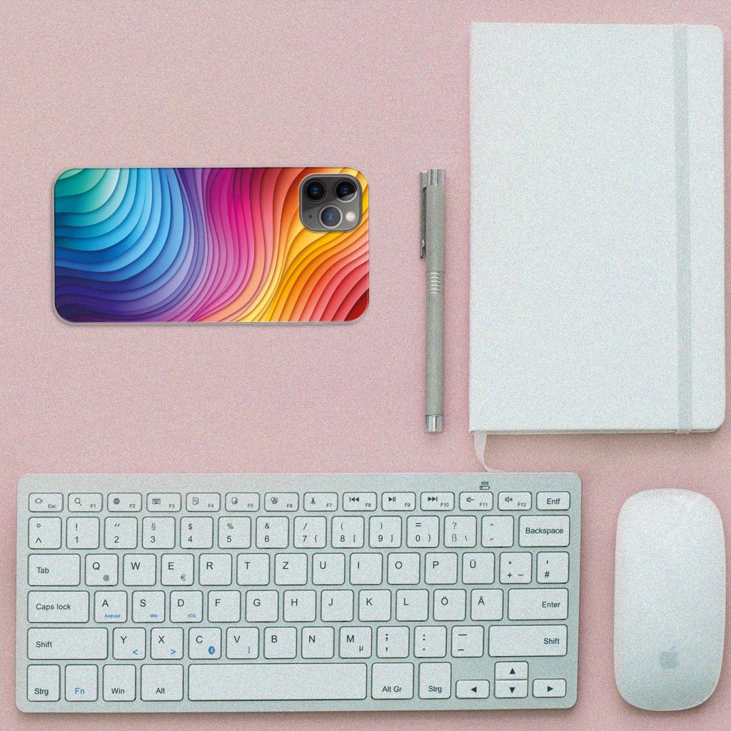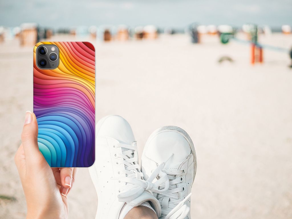 Een regenboog bestaat eigenlijk uit meer dan zeven kleuren, wist je dat? De zichtbare kleuren vloeien geleidelijk in elkaar over, waardoor er eigenlijk meer dan zeven kleuren zijn. Dat wij maar zeven ‘’stroken’’ licht zien, is dus eigenlijk gezichtsbedrog. Toch noemen wij dit hoesje regenboog, omdat wij er blij van worden! Dit design wordt geprint op een TPU Hoesje speciaal op maat gemaakt voor de Apple iPhone 11 Pro Max. Het ligt prettig in de hand en is licht van gewicht. Alleen de achterkant van je telefoon wordt beschermd. Daarom adviseren wij om dit hoesje in combinatie met een screenprotector te gebruiken. Bescherm jouw smartphone vandaag nog met dit super toffe regenboog hoesje!