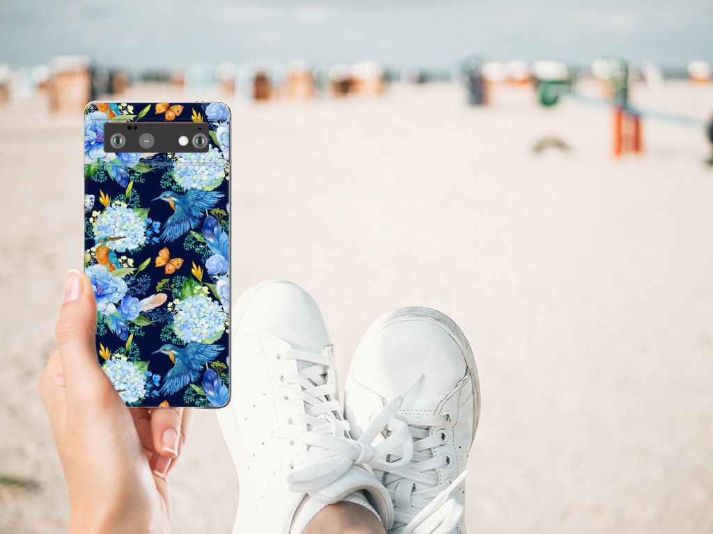 Wist je dat een ijsvogel ook wel vaak ‘’blauwe flits’’ wordt genoemd? Vliegend en jagend halen ze snelheden tot 80 k/m uur, waardoor je ze bijna niet ziet zitten. Onze ijsvogel blijft gelukkig wel zitten tussen de bloemen. Dit ijsvogel design wordt geprint op een TPU Hoesje speciaal op maat gemaakt voor de Google Pixel 6. Het ligt prettig in de hand en is licht van gewicht. Alleen de achterkant van je telefoon wordt beschermd. Daarom adviseren wij om dit hoesje in combinatie met een screenprotector te gebruiken. Bescherm jouw smartphone vandaag nog met dit prachtige ijsvogel design hoesje!