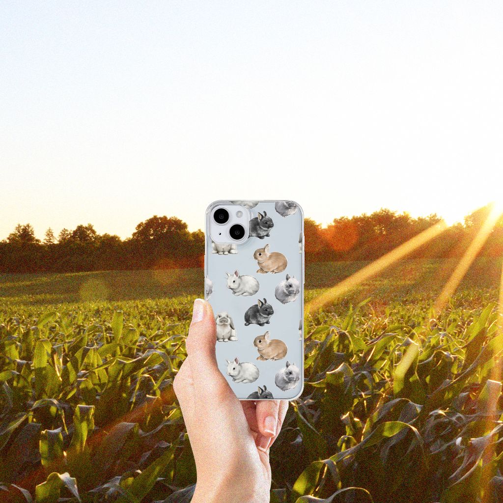 Wist je dat er wel 50 verschillende konijnenrassen zijn die zich onderscheiden in kleur, vacht, bouw en formaat? Daarom kon dit design met konijntjes eigenlijk niet ontbreken in onze collectie hoesjes. Wij zijn in ieder geval helemaal verliefd op deze schattige konijntjes. Dit design wordt geprint op een TPU Hoesje speciaal op maat gemaakt voor de iPhone 15. Het ligt prettig in de hand en is licht van gewicht. Alleen de achterkant van je telefoon wordt beschermd. Daarom adviseren wij om dit hoesje in combinatie met een screenprotector te gebruiken. Bescherm jouw smartphone vandaag nog met dit super schattige hoesje met konijntjes!