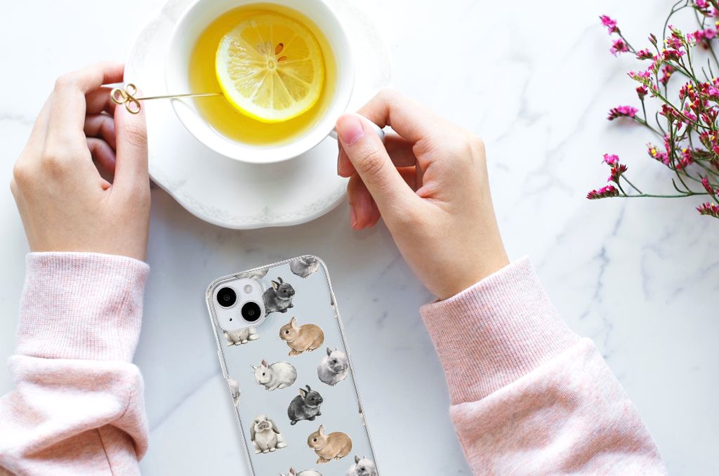 Wist je dat er wel 50 verschillende konijnenrassen zijn die zich onderscheiden in kleur, vacht, bouw en formaat? Daarom kon dit design met konijntjes eigenlijk niet ontbreken in onze collectie hoesjes. Wij zijn in ieder geval helemaal verliefd op deze schattige konijntjes. Dit design wordt geprint op een TPU Hoesje speciaal op maat gemaakt voor de iPhone 15 Plus. Het ligt prettig in de hand en is licht van gewicht. Alleen de achterkant van je telefoon wordt beschermd. Daarom adviseren wij om dit hoesje in combinatie met een screenprotector te gebruiken. Bescherm jouw smartphone vandaag nog met dit super schattige hoesje met konijntjes!