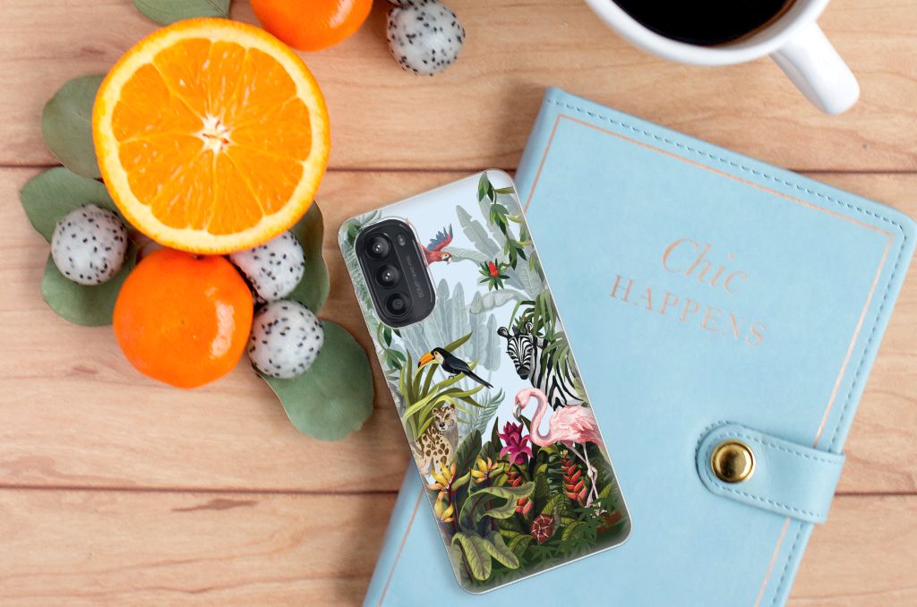 Ben je op zoek naar een tropische verrassing voor je Motorola Moto G52/G82? Dan is dit hoesje in jungle stijl zeker iets voor jou! Met de verschillende soorten dieren waan je je even in de Jungle, vind je ook niet? Dit design wordt geprint op een TPU Hoesje. Het ligt prettig in de hand en is licht van gewicht. Alleen de achterkant van je telefoon wordt beschermd. Daarom adviseren wij om dit hoesje in combinatie met een screenprotector te gebruiken. Bescherm jouw smartphone vandaag nog met dit stoere jungle design hoesje!