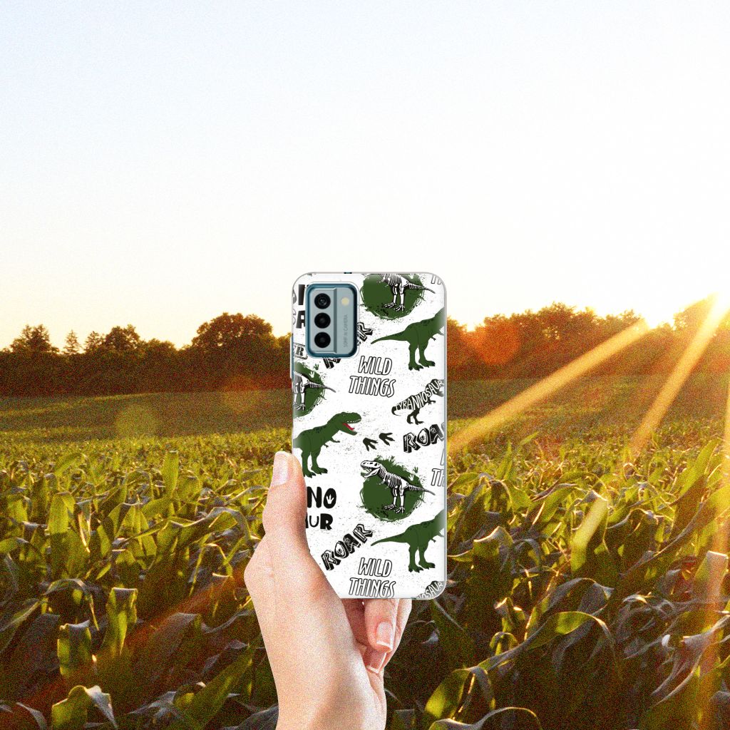 Ook een grote fan van alles wat met dinosaurussen te maken heeft? Dan mag dit hoesje met dino’s zeker niet ontbreken in jouw collectie! De skeletten, pootafdrukken en dino’s zorgen er hopelijk voor dat iedereen van jouw Nokia G22 afblijft! Dit toffe dino design wordt geprint op een TPU Hoesje. Het ligt prettig in de hand en is licht van gewicht. Alleen de achterkant van je telefoon wordt beschermd. Daarom adviseren wij om dit hoesje in combinatie met een screenprotector te gebruiken. Bestel vandaag nog dit gevaarlijke Dinosaurus design hoesje!