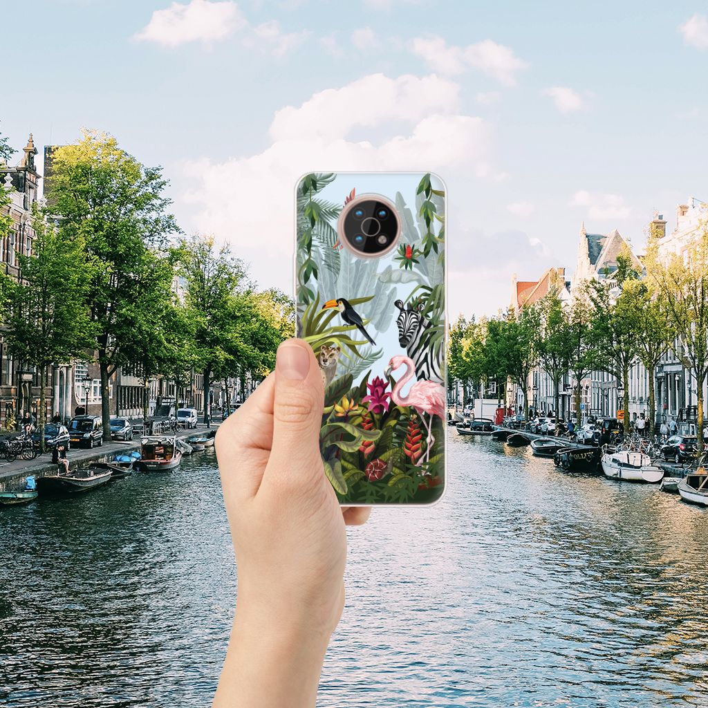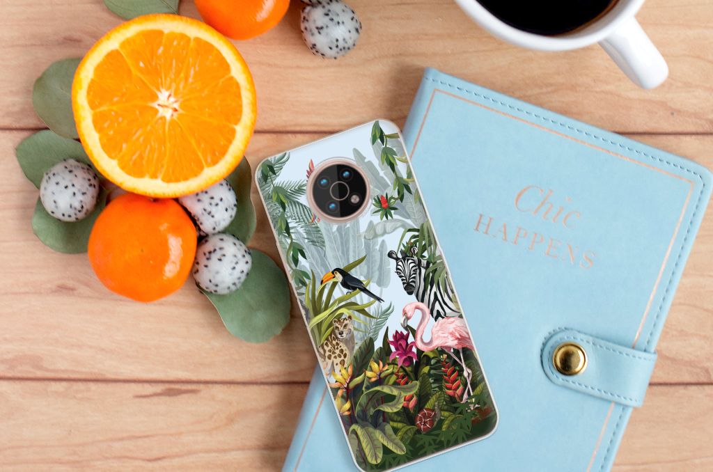 Ben je op zoek naar een tropische verrassing voor je Nokia G50? Dan is dit hoesje in jungle stijl zeker iets voor jou! Met de verschillende soorten dieren waan je je even in de Jungle, vind je ook niet? Dit design wordt geprint op een TPU Hoesje. Het ligt prettig in de hand en is licht van gewicht. Alleen de achterkant van je telefoon wordt beschermd. Daarom adviseren wij om dit hoesje in combinatie met een screenprotector te gebruiken. Bescherm jouw smartphone vandaag nog met dit stoere jungle design hoesje!