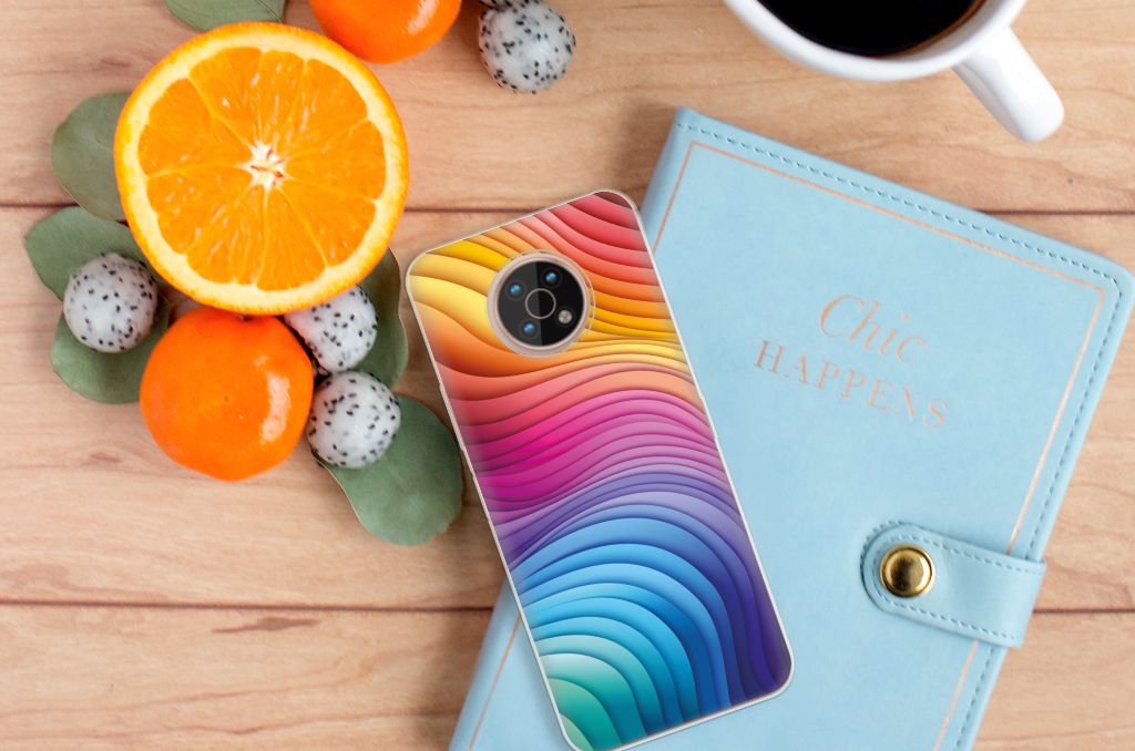Een regenboog bestaat eigenlijk uit meer dan zeven kleuren, wist je dat? De zichtbare kleuren vloeien geleidelijk in elkaar over, waardoor er eigenlijk meer dan zeven kleuren zijn. Dat wij maar zeven ‘’stroken’’ licht zien, is dus eigenlijk gezichtsbedrog. Toch noemen wij dit hoesje regenboog, omdat wij er blij van worden! Dit design wordt geprint op een TPU Hoesje speciaal op maat gemaakt voor de Nokia G50. Het ligt prettig in de hand en is licht van gewicht. Alleen de achterkant van je telefoon wordt beschermd. Daarom adviseren wij om dit hoesje in combinatie met een screenprotector te gebruiken. Bescherm jouw smartphone vandaag nog met dit super toffe regenboog hoesje!