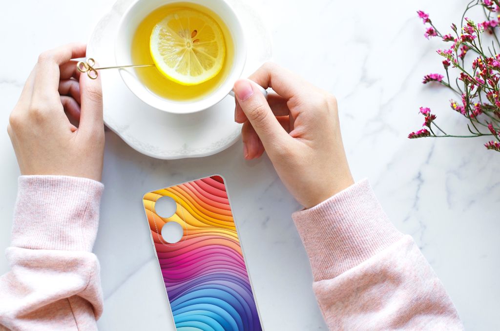 Een regenboog bestaat eigenlijk uit meer dan zeven kleuren, wist je dat? De zichtbare kleuren vloeien geleidelijk in elkaar over, waardoor er eigenlijk meer dan zeven kleuren zijn. Dat wij maar zeven ‘’stroken’’ licht zien, is dus eigenlijk gezichtsbedrog. Toch noemen wij dit hoesje regenboog, omdat wij er blij van worden! Dit design wordt geprint op een TPU Hoesje speciaal op maat gemaakt voor de OPPO A58 4G. Het ligt prettig in de hand en is licht van gewicht. Alleen de achterkant van je telefoon wordt beschermd. Daarom adviseren wij om dit hoesje in combinatie met een screenprotector te gebruiken. Bescherm jouw smartphone vandaag nog met dit super toffe regenboog hoesje!