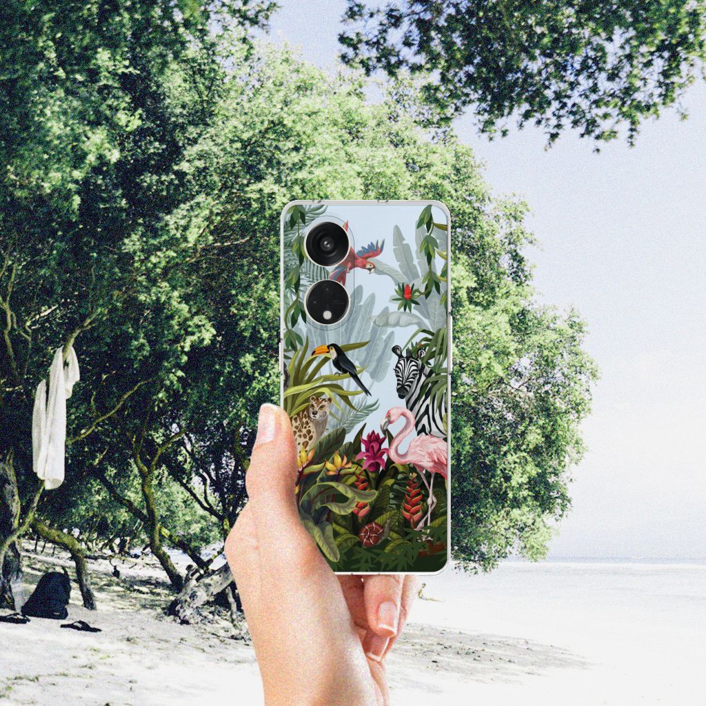 Ben je op zoek naar een tropische verrassing voor je OPPO Reno8 T 5G? Dan is dit hoesje in jungle stijl zeker iets voor jou! Met de verschillende soorten dieren waan je je even in de Jungle, vind je ook niet? Dit design wordt geprint op een TPU Hoesje. Het ligt prettig in de hand en is licht van gewicht. Alleen de achterkant van je telefoon wordt beschermd. Daarom adviseren wij om dit hoesje in combinatie met een screenprotector te gebruiken. Bescherm jouw smartphone vandaag nog met dit stoere jungle design hoesje!