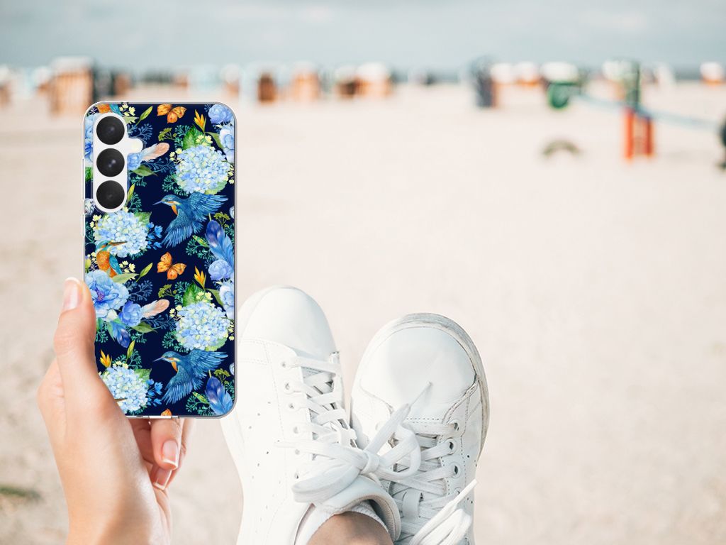 Wist je dat een ijsvogel ook wel vaak ‘’blauwe flits’’ wordt genoemd? Vliegend en jagend halen ze snelheden tot 80 k/m uur, waardoor je ze bijna niet ziet zitten. Onze ijsvogel blijft gelukkig wel zitten tussen de bloemen. Dit ijsvogel design wordt geprint op een TPU Hoesje speciaal op maat gemaakt voor de Samsung Galaxy A55. Het ligt prettig in de hand en is licht van gewicht. Alleen de achterkant van je telefoon wordt beschermd. Daarom adviseren wij om dit hoesje in combinatie met een screenprotector te gebruiken. Bescherm jouw smartphone vandaag nog met dit prachtige ijsvogel design hoesje!