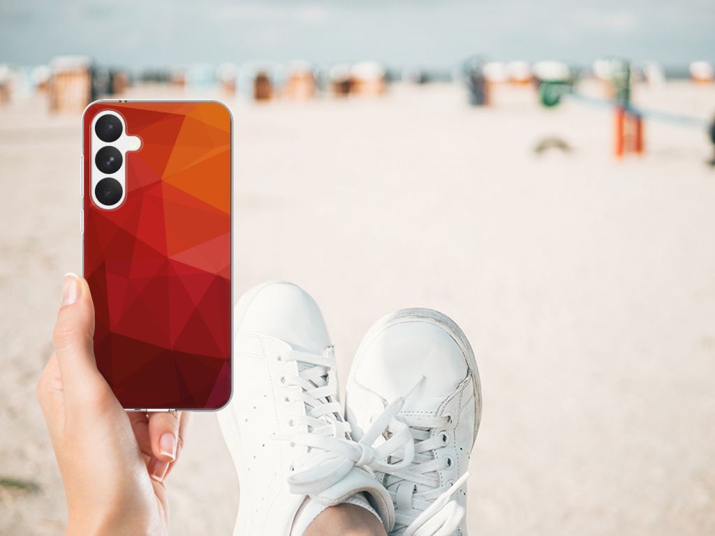 Houd jij van abstracte vormen? Dan is dit polygon red hoesje zeker iets voor jou! Door de verschillende kleuren en het verloop van donker naar licht val je gegarandeerd op met dit hoesje. Dit toffe design voor je Samsung Galaxy A55 wordt geprint op een TPU Hoesje. Het ligt prettig in de hand en is licht van gewicht. Ook fijn zijn de extra dikke hoeken en randen, waardoor je Samsung Galaxy A55 goed beschermd is bij een val. Alleen de achterkant van je telefoon wordt beschermd. Daarom adviseren wij om dit hoesje in combinatie met een screenprotector te gebruiken. Bestel vandaag nog met dit telefoonhoesje met dit toffe polygon red design!