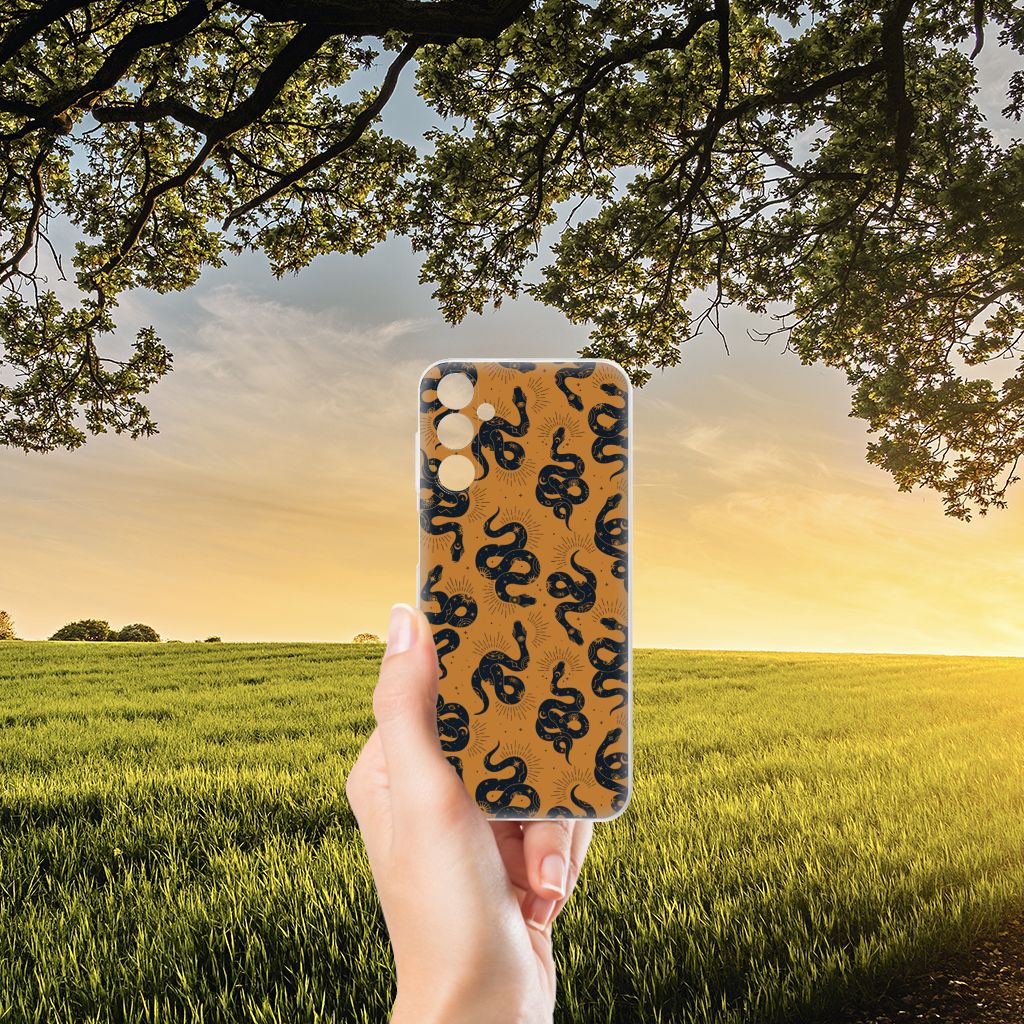 Slangen worden gekenmerkt door hun zeer lange en dunne lichaam en het ontbreken van ledematen. Wist je dat er ruim 3800 soorten slangen zijn? Waarvan maar 15% giftig is. Gelukkig is dit snakes design niet giftig! Hoe tof is dit design? 100% zeker dat jij opvalt met dit unieke snakes hoesje voor je Samsung Galaxy M14. Het design wordt geprint op een TPU Hoesje en ligt prettig in de hand. Alleen de achterkant van je telefoon wordt beschermd. Daarom adviseren wij om dit hoesje in combinatie met een screenprotector te gebruiken. Bescherm jouw smartphone vandaag nog met dit toffe snakes design hoesje!