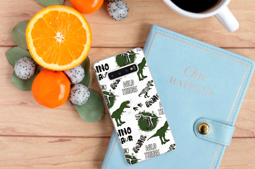 Ook een grote fan van alles wat met dinosaurussen te maken heeft? Dan mag dit hoesje met dino’s zeker niet ontbreken in jouw collectie! De skeletten, pootafdrukken en dino’s zorgen er hopelijk voor dat iedereen van jouw Samsung Galaxy S10 Plus afblijft! Dit toffe dino design wordt geprint op een TPU Hoesje. Het ligt prettig in de hand en is licht van gewicht. Alleen de achterkant van je telefoon wordt beschermd. Daarom adviseren wij om dit hoesje in combinatie met een screenprotector te gebruiken. Bestel vandaag nog dit gevaarlijke Dinosaurus design hoesje!