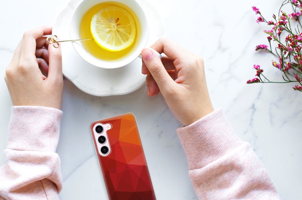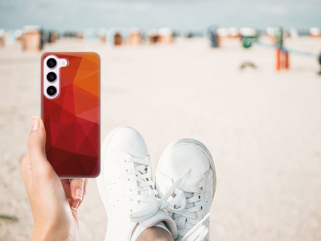 Houd jij van abstracte vormen? Dan is dit polygon red hoesje zeker iets voor jou! Door de verschillende kleuren en het verloop van donker naar licht val je gegarandeerd op met dit hoesje. Dit toffe design voor je Samsung Galaxy S23 wordt geprint op een TPU Hoesje. Het ligt prettig in de hand en is licht van gewicht. Ook fijn zijn de extra dikke hoeken en randen, waardoor je Samsung Galaxy S23 goed beschermd is bij een val. Alleen de achterkant van je telefoon wordt beschermd. Daarom adviseren wij om dit hoesje in combinatie met een screenprotector te gebruiken. Bestel vandaag nog met dit telefoonhoesje met dit toffe polygon red design!