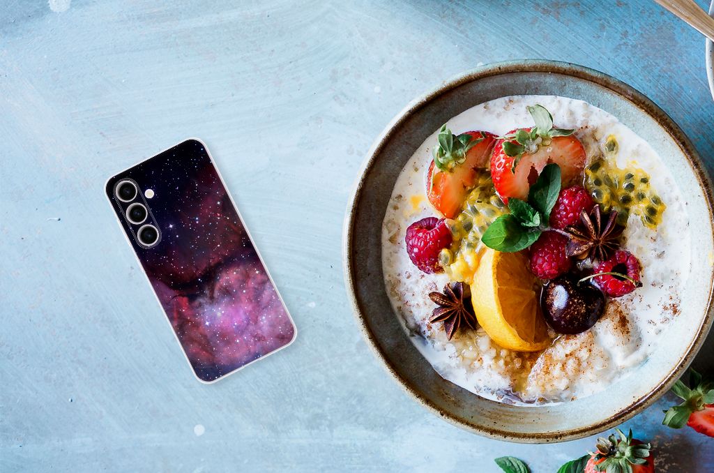 Het heelal bestaat o.a. uit planeten, sterren en licht. Met dit Galaxy design hoesje brengen wij het heelal een stukje dichterbij. Ben jij dus ook zo gefascineerd door het heelal dan is dit hoesje echt iets voor jouw Samsung Galaxy S24. Dit design wordt geprint op een TPU Hoesje. Het ligt prettig in de hand en is licht van gewicht. Alleen de achterkant van je telefoon wordt beschermd. Daarom adviseren wij om dit hoesje in combinatie met een screenprotector te gebruiken. Bestel vandaag nog dit mooie Galaxy design hoesje!