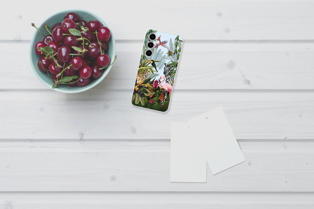 Ben je op zoek naar een tropische verrassing voor je Samsung Galaxy S24 Plus? Dan is dit hoesje in jungle stijl zeker iets voor jou! Met de verschillende soorten dieren waan je je even in de Jungle, vind je ook niet? Dit design wordt geprint op een TPU Hoesje. Het ligt prettig in de hand en is licht van gewicht. Alleen de achterkant van je telefoon wordt beschermd. Daarom adviseren wij om dit hoesje in combinatie met een screenprotector te gebruiken. Bescherm jouw smartphone vandaag nog met dit stoere jungle design hoesje!