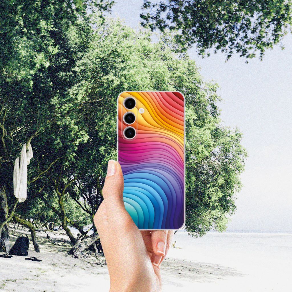 Een regenboog bestaat eigenlijk uit meer dan zeven kleuren, wist je dat? De zichtbare kleuren vloeien geleidelijk in elkaar over, waardoor er eigenlijk meer dan zeven kleuren zijn. Dat wij maar zeven ‘’stroken’’ licht zien, is dus eigenlijk gezichtsbedrog. Toch noemen wij dit hoesje regenboog, omdat wij er blij van worden! Dit design wordt geprint op een TPU Hoesje speciaal op maat gemaakt voor de Samsung Galaxy S24. Het ligt prettig in de hand en is licht van gewicht. Alleen de achterkant van je telefoon wordt beschermd. Daarom adviseren wij om dit hoesje in combinatie met een screenprotector te gebruiken. Bescherm jouw smartphone vandaag nog met dit super toffe regenboog hoesje!