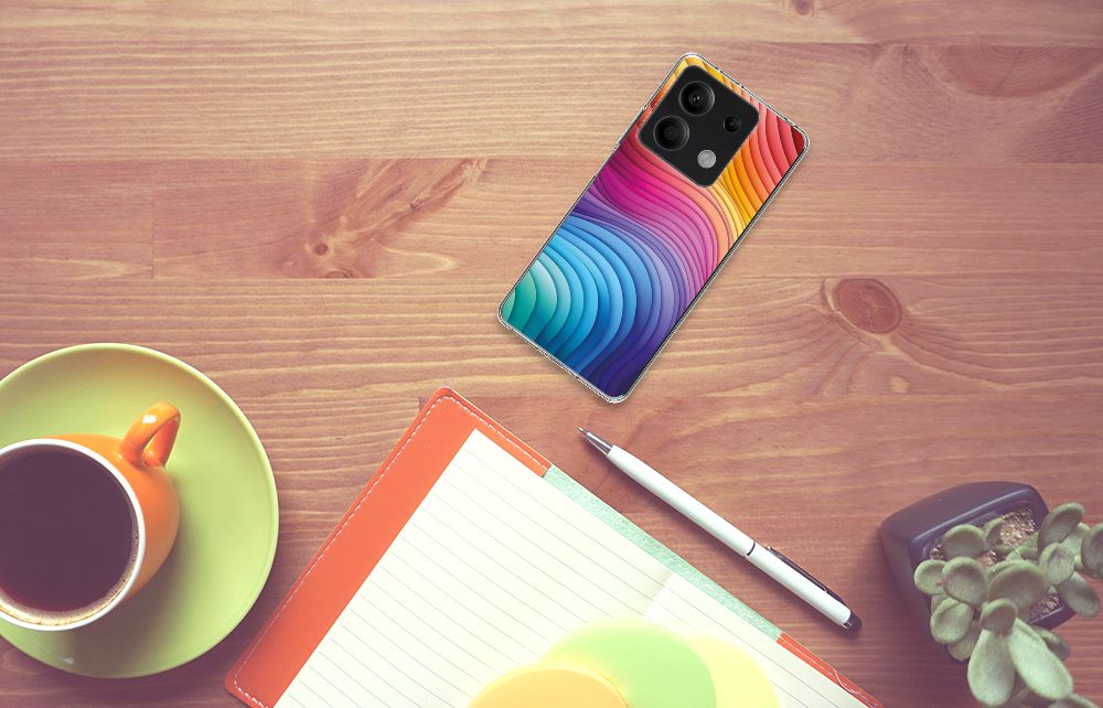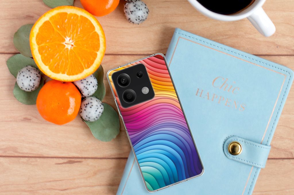 Een regenboog bestaat eigenlijk uit meer dan zeven kleuren, wist je dat? De zichtbare kleuren vloeien geleidelijk in elkaar over, waardoor er eigenlijk meer dan zeven kleuren zijn. Dat wij maar zeven ‘’stroken’’ licht zien, is dus eigenlijk gezichtsbedrog. Toch noemen wij dit hoesje regenboog, omdat wij er blij van worden! Dit design wordt geprint op een TPU Hoesje speciaal op maat gemaakt voor de Xiaomi Redmi Note 13 5G. Het ligt prettig in de hand en is licht van gewicht. Alleen de achterkant van je telefoon wordt beschermd. Daarom adviseren wij om dit hoesje in combinatie met een screenprotector te gebruiken. Bescherm jouw smartphone vandaag nog met dit super toffe regenboog hoesje!