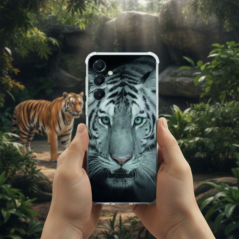 Het Tijger design is niet zomaar een print; het is een symbool van moed, onafhankelijkheid en schoonheid. Dit specifieke ontwerp is zorgvuldig gekozen om een gevoel van avontuur en kracht op te roepen. De gedetailleerde weergave van de tijgerhuid met zijn kenmerkende strepenpatroon en de intense blik van de tijger creëren een diepte die je zelden ziet. Het is een perfecte manier om je liefde voor wilde dieren en je eigen krachtige persoonlijkheid te uiten, terwijl je tegelijkertijd je Samsung Galaxy A17 beschermt met een stijlvol en functioneel TPU hoesje voor de Samsung A17.