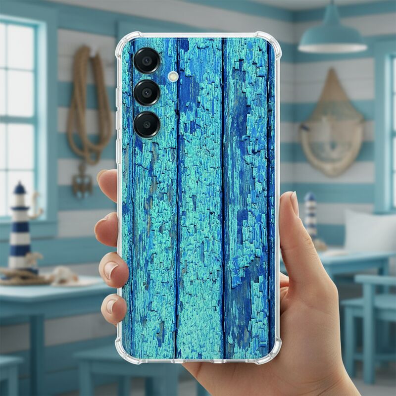 🎁 Geef je Samsung Galaxy A17 de bescherming en stijl die het verdient met het "Wood Blue" Samsung Galaxy A17 hoesje. Bestel vandaag nog en ervaar de perfecte combinatie van natuurlijke elegantie en robuuste bescherming!