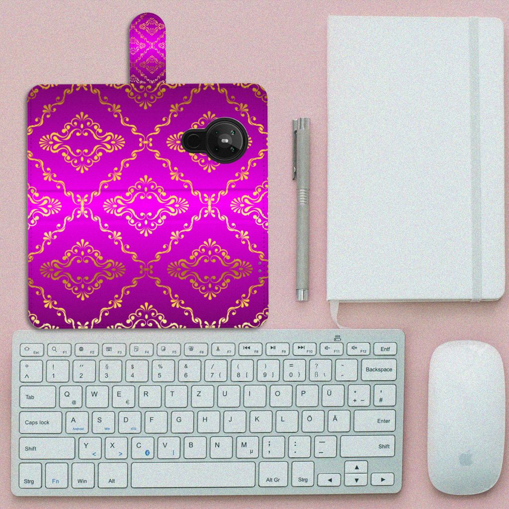 Dit super mooie Wallet Case met Barok Roze achtergrond is een geweldige en duurzame bescherming voor jouw smartphone. De roze kleuren en figuren worden met de grootst mogelijke zorg op het hoesje gezet en op alle zijden van de bookstyle case bedrukt. Dit drukwerk doen we in ons eigen magazijn, zodat we de kwaliteit van het hoesje met roze barok achtergrond kunnen garanderen. Dit roze boekhoesje is op maat gemaakt en heeft verschillende vakjes voor pasjes en briefgeld. Daarnaast is het lipje aan de buitenkant zeer handig. De case sluit hierdoor perfect af. De houder aan de binnenzijde is van tpu en zeer flexibel. Ook het lipje aan de buitenzijde wordt in roze barok bedrukt. Nergens anders tref je een boekhoesje met roze barok achtergrond aan dat zo goed past bij jouw Nokia 5.3.
