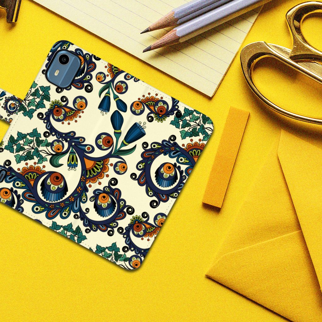 Ben je liefhebber van bloemen met ogen in een barokke stijl? Dan kunnen we jou vast en zeker verblijden met een design hoesje Barok Flower. In de bloemen zijn namelijk een paar ogen verwerkt en dit gegeven maakt het zeer geslaagde Nokia C12 Wallet Case tot een ware eyecatcher. De hele mooie print met bloemen en ogen in de stijl barok zetten we op het boekhoesje op het moment dat jij je bestelling plaatst. Hierdoor krijgt jouw telefoon een print met een bijzondere uitstraling. Het bedrukken van deze case doen we helemaal zelf. De bloemen met ogen in barok stijl zien er op dit mooie design hoesje oogverblindend uit. Je ziet ook een deel van de bloemen met ogen op het lipje staan, dat de case aan de buitenkant afsluit. Je bankpas of creditcard kun je kwijt in een van de vakjes aan de binnenkant van het telefoonhoesje met bloemen en ogen in barok stijl. Jouw portemonnee kun je dankzij deze case thuislaten.