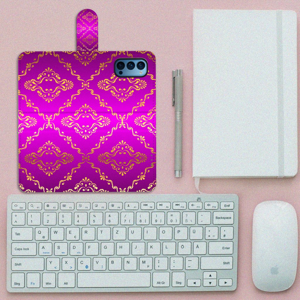 Dit super mooie Wallet Case met Barok Roze achtergrond is een geweldige en duurzame bescherming voor jouw smartphone. De roze kleuren en figuren worden met de grootst mogelijke zorg op het hoesje gezet en op alle zijden van de bookstyle case bedrukt. Dit drukwerk doen we in ons eigen magazijn, zodat we de kwaliteit van het hoesje met roze barok achtergrond kunnen garanderen. Dit roze boekhoesje is op maat gemaakt en heeft verschillende vakjes voor pasjes en briefgeld. Daarnaast is het lipje aan de buitenkant zeer handig. De case sluit hierdoor perfect af. De houder aan de binnenzijde is van tpu en zeer flexibel. Ook het lipje aan de buitenzijde wordt in roze barok bedrukt. Nergens anders tref je een boekhoesje met roze barok achtergrond aan dat zo goed past bij jouw OPPO Reno 4 Pro 5G.