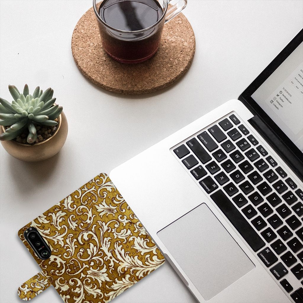 Dit super degelijke en prachtige Wallet Case met Barok Goud als achtergrond is een perfecte bescherming voor jouw smartphone. Het goud gecombineerd met opvallende tekeningen wordt op een boekhoesje gezet en is van toegevoegde waarde voor jouw Sony Xperia 5III. Het bedrukken doen we in ons eigen magazijn, zodat we de kwaliteit van de case met barok goud achtergrond kunnen garanderen. Dit gouden boekhoesje is op maat gemaakt en heeft verschillende vakjes voor pasjes en briefgeld. Daarnaast is het lipje aan de buitenkant van de gouden case zeer handig. De case sluit perfect. De houder aan de binnenzijde is van tpu en zeer flexibel. Ook het lipje aan de buitenzijde wordt in gouden barok bedrukt. Hier tref je een boekhoesje met gouden barok achtergrond aan dat nergens anders te vinden is.
