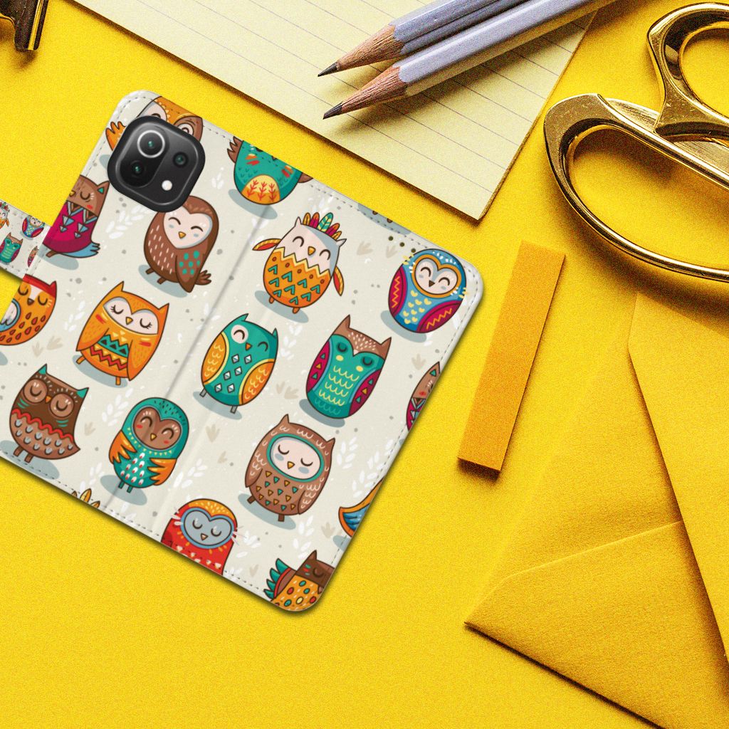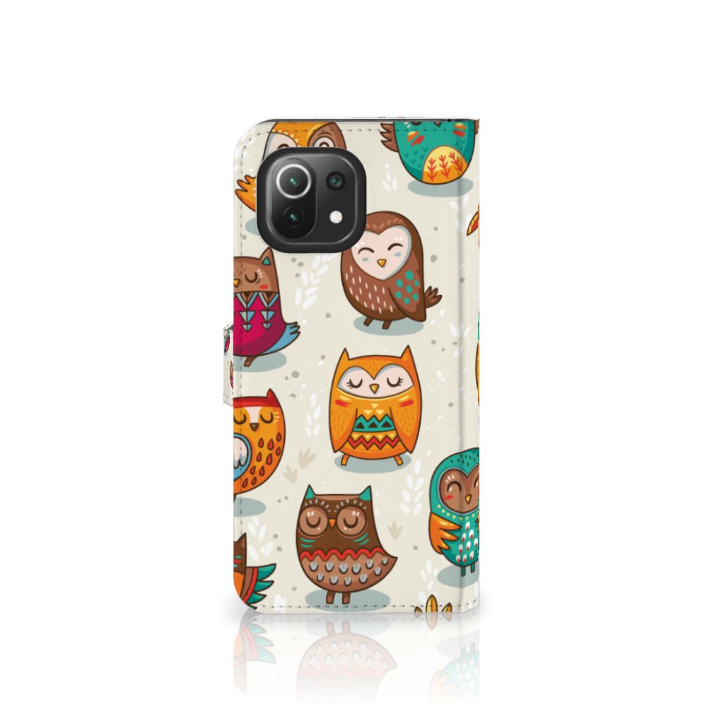 Xiaomi 11 Lite 5G NE | Mi 11 Lite Telefoonhoesje met ruimte voor drie pasjes Vrolijke Uilen
